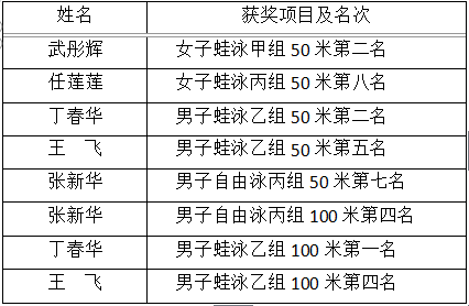 2017年7月15日上午,“2017年西安交通大学“思源物业杯”教职工游泳比赛在e世博 兴庆校区游泳馆举行,比赛以甲、乙、丙三个年龄段划分,分男子组、女子组4大类项目进行。在院工会的积极组织和协助下,我院派出了由任莲莲,武彤辉,张新华,王飞和丁春华五名老师组成的代表队,分别参加了不同组别多个项目的的比赛。健儿们在泳池中劈波斩浪、奋力争先,分别在各自的项目中取得了佳绩。获奖名单如下。
