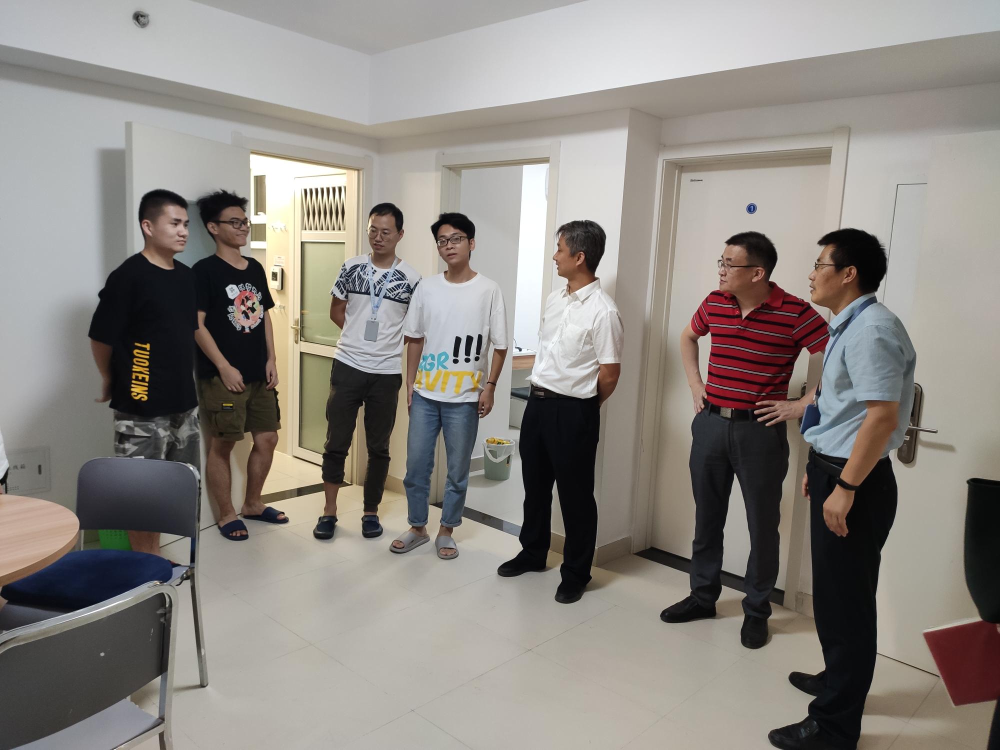 院长申胜平,党委书记李小跃,副书记陈永华,团工委书记、研究生辅导员李昱静在中国西部科技创新港朗园研究生宿舍走访慰问2020级研究生新生。