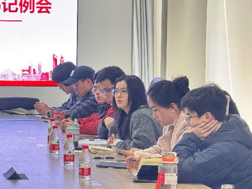李昱静作总结发言。她向各支部提出三方面要求:一是紧扣“大主题”,围绕年度党建重点任务,分月细化落实具体措施;二是推动“大联动”,探索跨支部、跨单位党建模式,形成系统化的党建品牌效应;三是打造“大特色”,结合学院的学科优势,创新活动形式,提升组织生活的吸引力和感染力。