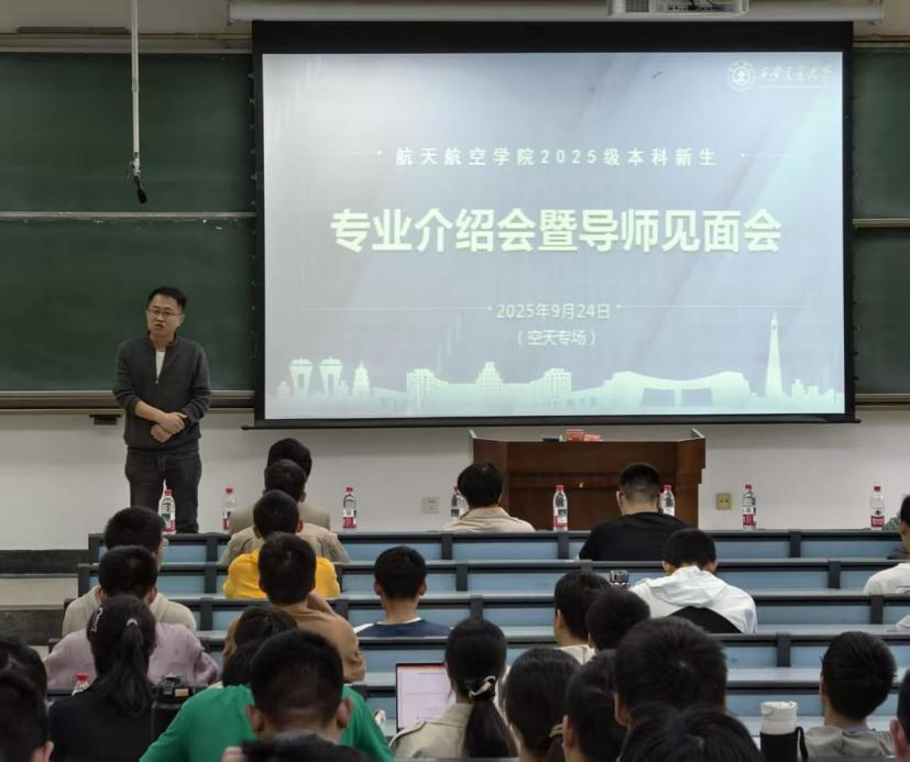副院长张虎,空天工程系主任雷蒋、副主任孟雪广,导师代表周进雄教授、刘振教授、孙剑副教授、左逢源副教授出席活动。张虎谈及现代航天事业的发展,指出专业知识学习将积极促进高质量就业,对培养学生独立思考和自主学习能力具有重大意义。他还指出,兴趣在大学生活中起到重要引导作用。雷蒋着眼于航天事业的历史演变和专业荣誉,介绍了学院“五个一流”以及专业课程设置情况,阐述了空天工程系对社会的重要贡献。孟雪广介绍了飞设、飞动等专业应用的现代科技成果。孙剑展示了飞设及飞动专业的技术优势和研究基础。左逢源介绍了专业学习的科学方法以及科学技术的应用场景。周进雄针对学生提出的“如何发现自身兴趣”、“航天专业书籍阅读”等问题进行了详尽解答,并期望学校的先进设施和图书馆的丰富资源能为学生提供更优质的学习体验和发展机遇。