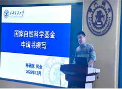 何会对国家自然科学基金申请书撰写作了专题辅导。他从申请书的整体框架设计、科学问题凝练、创新点提炼、研究方案论证等方面进行了系统讲解,对不同类型项目的撰写特点和注意事项作了详细说明。他强调申请书是与评审专家“对话”的核心载体,关键在于逻辑清晰、论证充分、亮点突出、格式规范。